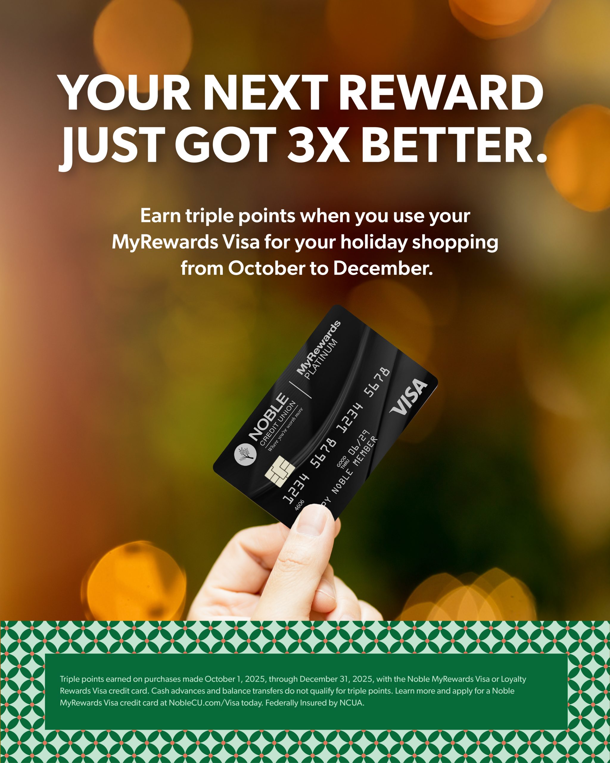 Everyone knows: good things come in threes! Enjoy 3x rewards points on every purchase with your MyRewards Visa until the end of 2025. It’s our way of saying thank you for being a member with us!